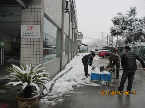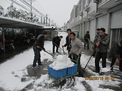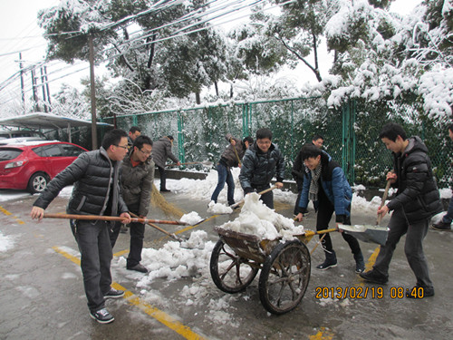正月初十,年味漸遠(yuǎn)。正當(dāng)我們收拾好心情,投入新年工作的時(shí)候,一場(chǎng)大雪與我們不期而遇。厚厚的白雪覆蓋了無(wú)錫的大街小巷,看公司銀裝素裹,十分欣喜。 清早,為了方便日常通行,前友的員工們自發(fā)的尋找工具,進(jìn)行掃雪。由于條件的限制,配備的掃雪工具只有鐵锨和掃帚,加上低溫天氣,使除雪工作更加艱難,員工們的手和臉都凍得通紅,然而,這一切絲毫沒(méi)有影響大家掃雪的熱情和工作效率。隨后,在檢測(cè)室孟主任、綜合辦陳主任的帶領(lǐng)下,大家發(fā)揚(yáng)了吃苦耐勞、頑強(qiáng)拼搏的戰(zhàn)斗精神,團(tuán)結(jié)協(xié)作,頂著寒風(fēng),將公司場(chǎng)地積雪清掃干凈。柳絮般的小雪融合著前友人的團(tuán)結(jié)與激情,此情此景不禁讓人感嘆,前友人就是這樣一個(gè)有凝聚力、正能量的團(tuán)體! 新春上班第一天有趣的掃雪活動(dòng),展示出了前友人的精神面貌,堅(jiān)信蛇年會(huì)有個(gè)好兆頭!