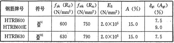 熱處理帶肋高強鋼筋是指強度級別不低于400MPa的熱處理帶肋鋼筋。近年來,我市建筑工程中已廣泛應(yīng)用了400MPa級高強鋼筋,逐步推廣了500MPa級高強鋼筋,600MPa級高強鋼筋也開始在新開工程中應(yīng)用。 2012年8月28日,省住建廳發(fā)布了《熱處理帶肋高強鋼筋混凝土結(jié)構(gòu)技術(shù)規(guī)程》(蘇JG/T054-2012),該規(guī)程的應(yīng)用范圍為采用600MPa、630MPa級熱處理帶肋高強鋼筋HTRB600、HTRB630的砼結(jié)構(gòu),規(guī)程內(nèi)容包括設(shè)計、施工及驗收等方面的技術(shù)要求。 熱處理帶肋高強鋼筋的強度、彈性模量、斷后伸長率和最大力下的總伸長率限值(見表):