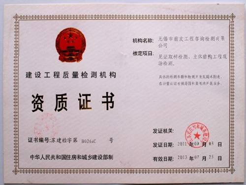 近日,從江蘇省住房和城鄉(xiāng)建設(shè)廳行政審批公告(蘇建審批公告(2011)第0154號(hào)文獲悉),無(wú)錫市前友工程咨詢檢測(cè)有限公司已順利通過(guò)建設(shè)工程檢測(cè)機(jī)構(gòu)資質(zhì)審查,核準(zhǔn)資質(zhì)的項(xiàng)目和類別包括:見證取樣檢測(cè)A、主體結(jié)構(gòu)工程現(xiàn)場(chǎng)專項(xiàng)檢測(cè)C、建筑節(jié)能工程專項(xiàng)檢測(cè)(備1)、室內(nèi)環(huán)境備案類檢測(cè)(備3)、建筑水電備案類檢測(cè)(備6-1)、墻體材料備案檢測(cè)(備7)、飾面材料備案類檢測(cè)(備8)、防水材料備案類檢測(cè)(備9)、門窗備案類檢測(cè)(備10)。![]() | ||
