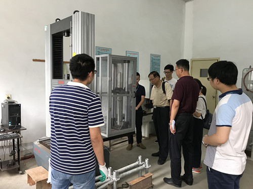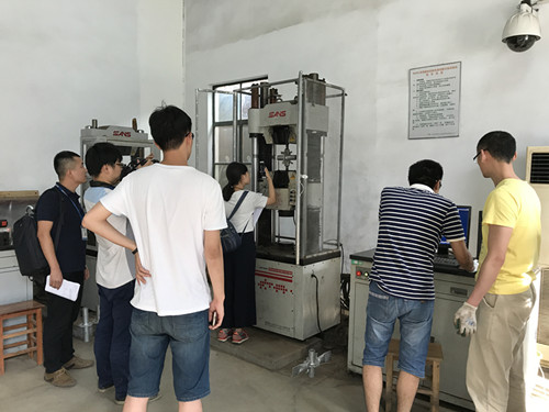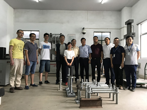 7月1日,工程建設(shè)行業(yè)標準《建筑施工承插型盤扣式鋼管支架安全技術(shù)標準》JG 231修訂版征求意見稿會議在南京召開,標準編制組全體人員參加了會議。 標準修編,試驗先行。根據(jù)會議要求,近期,由東南大學、無錫市前友工程咨詢檢測有限公司、江蘇速捷模架科技有限公司在前期已進行大量試驗的基礎(chǔ)上,再進行系列盤扣架構(gòu)配件、整架和堆載應(yīng)用的實驗、試驗和檢測,為標準選用參數(shù)指標和驗收要求提供更科學的依據(jù)。 7月8日,東南大學郭正興教授等標準主編人員來到無錫市前友檢測公司,指導盤扣架試驗,包括連接盤單側(cè)抗剪強度試驗、連接盤雙側(cè)彎剪強度試驗、連接盤抗拉強度、連接盤內(nèi)側(cè)環(huán)焊縫抗剪強度試驗、可調(diào)托撐和可調(diào)底座抗壓強度試驗。江蘇省土木建筑學會秘書長王華研究員級高級工程師也親臨現(xiàn)場給予指導。