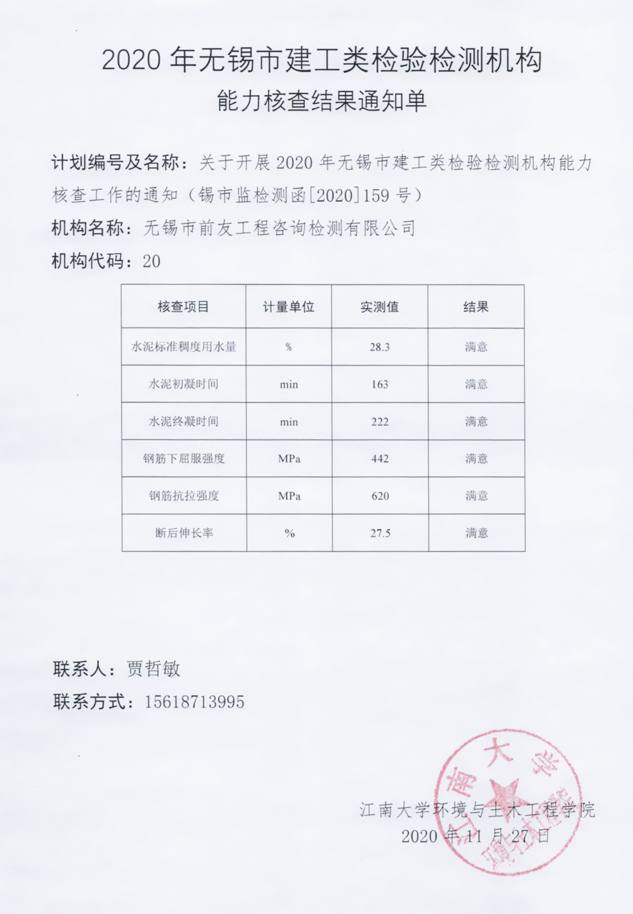 | 2020年無(wú)錫市建工類檢測(cè)機(jī)構(gòu)水泥鋼筋能力核查公司全獲滿意 | ||