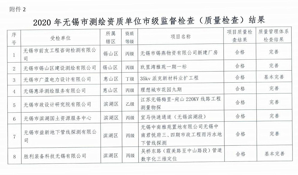 | 2020年無(wú)錫市測(cè)繪資質(zhì)單位市級(jí)監(jiān)督檢査結(jié)果出爐 | ||