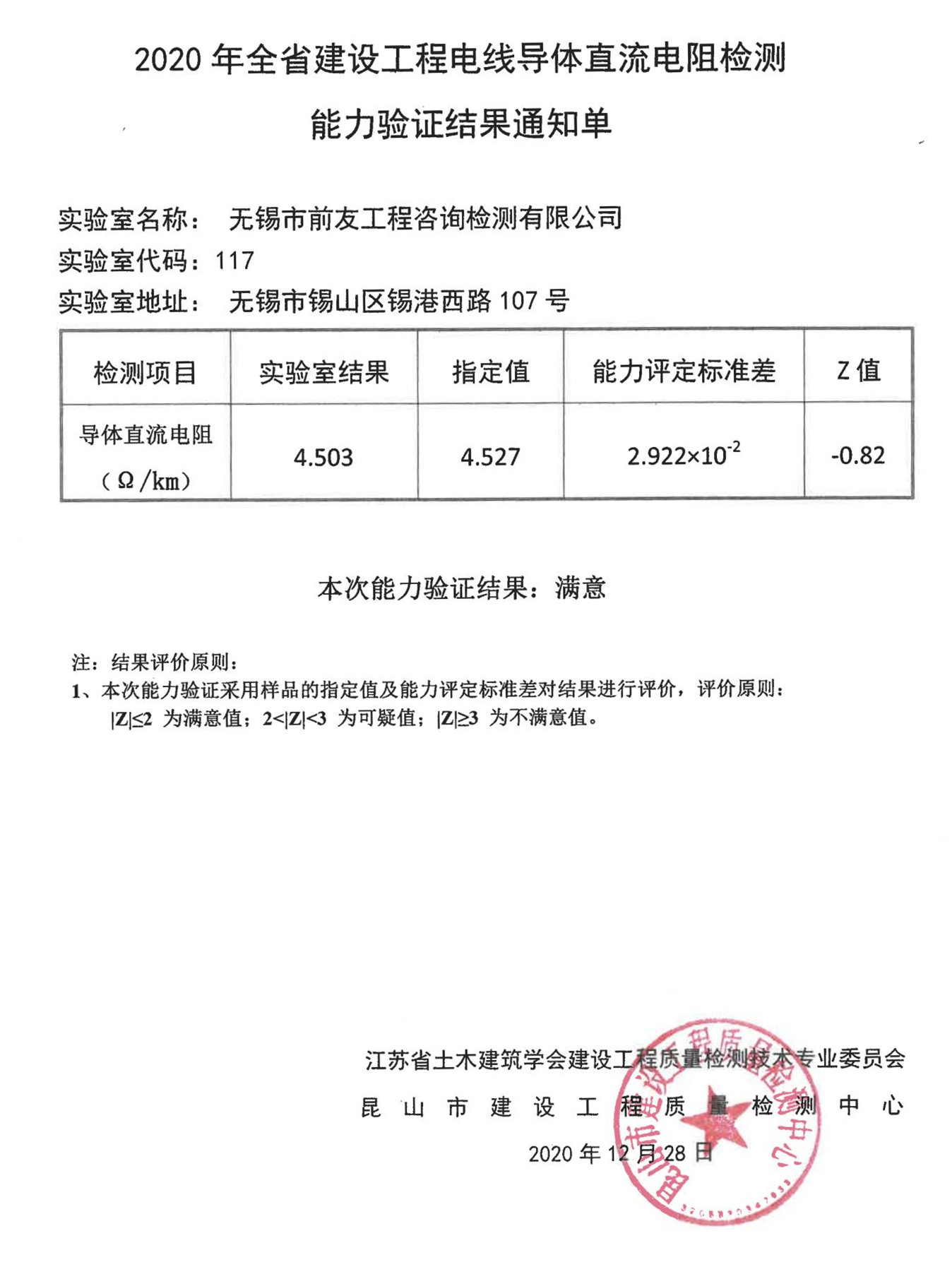 根據(jù)《省住房城鄉(xiāng)建設(shè)廳關(guān)于做好2020年全省建設(shè)工程質(zhì)量檢測(cè)能力驗(yàn)證工作的通知》文件要求,江蘇省土木建筑學(xué)會(huì)建設(shè)工程質(zhì)量檢測(cè)技術(shù)專業(yè)委員會(huì)委托昆山市建設(shè)工程質(zhì)量檢測(cè)中心組織開(kāi)展了2020年全省電線導(dǎo)體直流電阻檢測(cè)能力驗(yàn)證。2020年12月31日,發(fā)布了能力驗(yàn)證結(jié)果。 近日,公司收到2020年全省電線導(dǎo)體直流電阻檢測(cè)能力驗(yàn)證結(jié)果通知單與能力驗(yàn)證結(jié)果滿意證書(shū)。