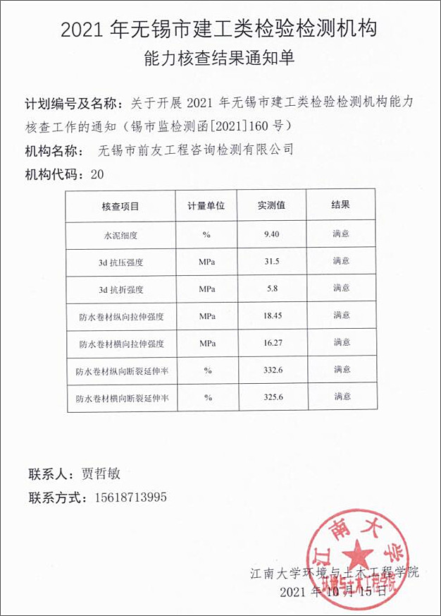 | 2021年無(wú)錫市建工類檢驗(yàn)檢測(cè)項(xiàng)目能力核查公司獲滿意 | ||