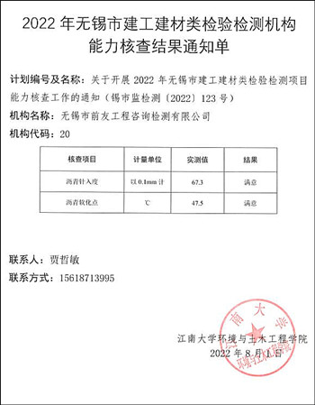 為加強(qiáng)對我市資質(zhì)認(rèn)定檢驗檢測機(jī)構(gòu)的事中事后監(jiān)管,提升檢驗檢測機(jī)構(gòu)技術(shù)能力水平,根據(jù)《檢驗檢測機(jī)構(gòu)監(jiān)督管理辦法》第十八條并結(jié)合我市實際,無錫市市場監(jiān)督管理局于7月份在全市資質(zhì)認(rèn)定檢驗檢測機(jī)構(gòu)中開展瀝青針入度、軟化點、水泥比表面積、燒失量4個參數(shù)的檢測能力核查工作。 本次能力核查工作委托江南大學(xué)為技術(shù)支持單位,負(fù)責(zé)能力核查作業(yè)指導(dǎo)書制定、樣品準(zhǔn)備、結(jié)果匯總、統(tǒng)計分析等工作。 瀝青針入度、軟化點參數(shù)測定結(jié)果采用Z比分?jǐn)?shù)進(jìn)行判定。|Z|≤2,判定為滿意值,說明機(jī)構(gòu)目前的檢測能力狀況良好;2<|Z|<3,判定為可疑值,說明機(jī)構(gòu)目前的檢測能力狀況存在一定問題;|Z|≥3,判定為不滿意值或離群值,說明機(jī)構(gòu)目前的檢測能力狀況不理想,存在較大問題。水泥比表面積、燒失量按照與標(biāo)準(zhǔn)物質(zhì)證書指定值進(jìn)行比對,在證書規(guī)定的允許誤差范圍內(nèi)為滿意結(jié)果。本次能力核查中,無錫市前友工程咨詢檢測有限公司獲得滿意結(jié)果。