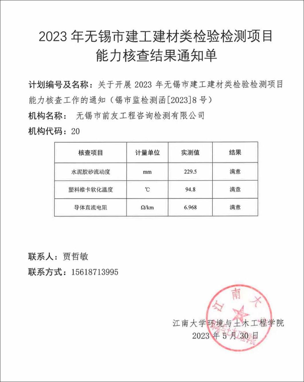 為加強對我市資質(zhì)認定檢驗檢測機構(gòu)的事中事后監(jiān)管,提升檢驗檢測機構(gòu)技術(shù)能力水平,根據(jù)《檢驗檢測機構(gòu)監(jiān)督管理辦法》第十八條并結(jié)合我市實際,無錫市市場監(jiān)督管理局于5月份在全市資質(zhì)認定檢驗檢測機構(gòu)中開展水泥膠砂流動度、塑料維卡軟化溫度、電線電纜導(dǎo)體直流電阻等參數(shù)的檢測能力核查工作。 本次能力核查工作委托江南大學(xué)為技術(shù)支持單位,負責(zé)能力核查作業(yè)指導(dǎo)書制定、樣品準備、結(jié)果匯總、統(tǒng)計分析等工作。 水泥膠砂流動度、塑料維卡軟化溫度參數(shù)測定結(jié)果采用Z比分數(shù)進行判定。|Z|≤2,判定為滿意值,說明機構(gòu)目前的檢測能力狀況良好;2<|Z|<3,判定為可疑值,說明機構(gòu)目前的檢測能力狀況存在一定問題;|Z|≥3,判定為不滿意值或離群值,說明機構(gòu)目前的檢測能力狀況不理想,存在較大問題。電線電纜導(dǎo)體直流電阻按照與標準物質(zhì)證書指定值進行比對,在證書規(guī)定的允許誤差范圍內(nèi)為滿意結(jié)果,不在證書規(guī)定的允許誤差范圍內(nèi)為不滿意結(jié)果。本次能力核查中,無錫市前友工程咨詢檢測有限公司獲得滿意結(jié)果。