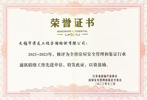 近日,江蘇省房地產(chǎn)業(yè)協(xié)會(huì)房屋安全管理和鑒定專業(yè)委員會(huì)以蘇房協(xié)鑒〔2023〕17號(hào)文發(fā)布“關(guān)于表彰會(huì)員單位通訊聯(lián)絡(luò)工作先進(jìn)單位的通知”。無錫市前友工程咨詢檢測有限公司榮獲“通訊聯(lián)絡(luò)工作先進(jìn)單位”。 近三年來,各會(huì)員單位按照專委會(huì)的要求,通訊聯(lián)絡(luò)工作保持了經(jīng)常溝通,工作細(xì)致,按時(shí)做好信息報(bào)送等聯(lián)絡(luò)工作。經(jīng)安鑒專委會(huì)秘書處對三年來會(huì)員單位通訊聯(lián)絡(luò)工作的綜合評選,其中29個(gè)單位被評為“通訊聯(lián)絡(luò)工作先進(jìn)單位”。