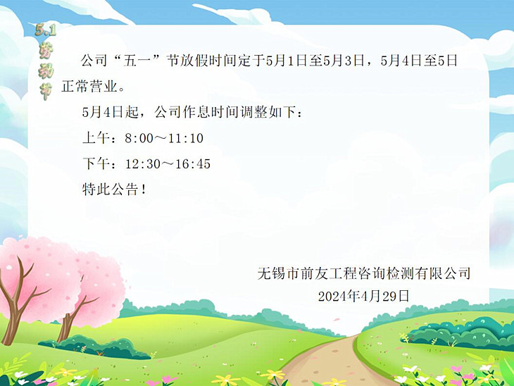 | “五一”勞動(dòng)節(jié)放假及節(jié)后營(yíng)業(yè)時(shí)間調(diào)整的公告 | ||