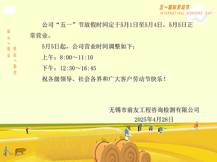 | 關于“五一”勞動節(jié)放假及節(jié)后營業(yè)時間調(diào)整的公告 | ||