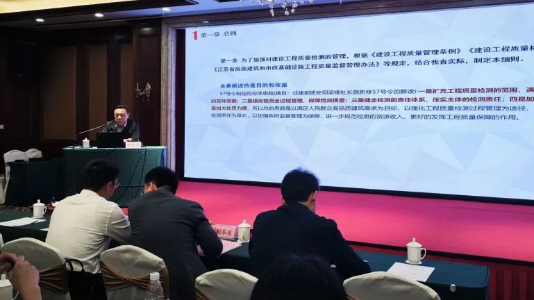 會(huì)議邀請(qǐng)省工程質(zhì)量檢測(cè)行業(yè)專(zhuān)家范紅兵對(duì)《江蘇省建設(shè)工程質(zhì)量檢測(cè)管理實(shí)施細(xì)則》進(jìn)行了全文解讀。專(zhuān)家詳細(xì)闡述了《實(shí)施細(xì)則》的出臺(tái)背景、政策依據(jù)、主要內(nèi)容及標(biāo)準(zhǔn)要求等,并著重對(duì)檢測(cè)活動(dòng)管理、法律責(zé)任的相關(guān)條文及注意事項(xiàng)進(jìn)行了深入的剖析,加深了各檢測(cè)機(jī)構(gòu)對(duì)于《實(shí)施細(xì)則》的認(rèn)識(shí),為準(zhǔn)確把握和執(zhí)行《實(shí)施細(xì)則》提供了有力的技術(shù)指導(dǎo)。在最后的現(xiàn)場(chǎng)交流互動(dòng)環(huán)節(jié),專(zhuān)家對(duì)與會(huì)人員提出的疑問(wèn)困惑進(jìn)行了詳細(xì)解答,解決了各檢測(cè)機(jī)構(gòu)在實(shí)際操作中存在的困擾。